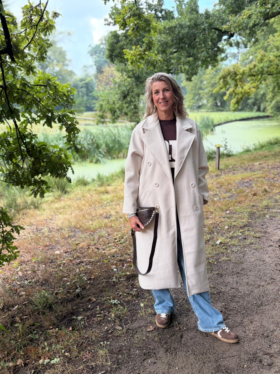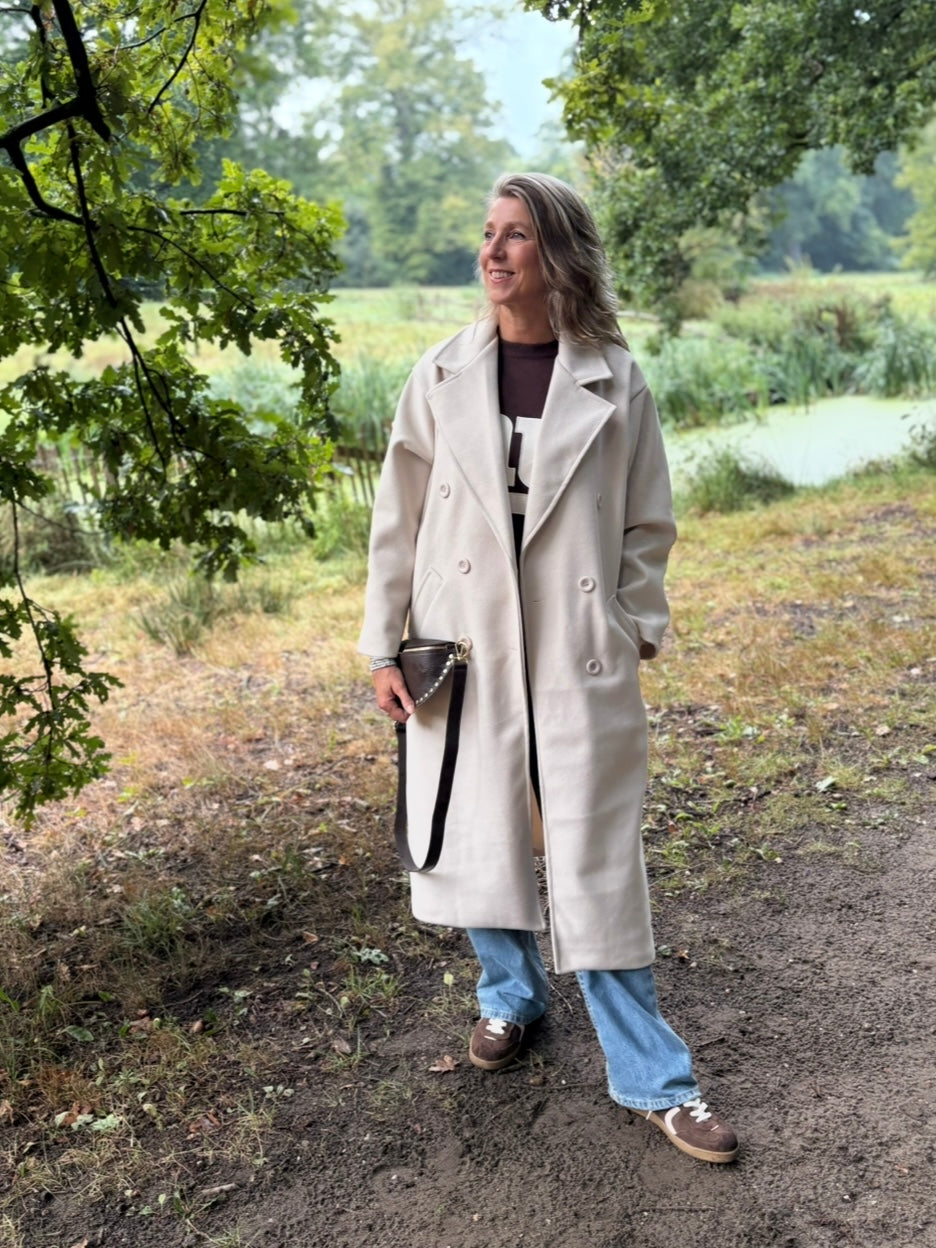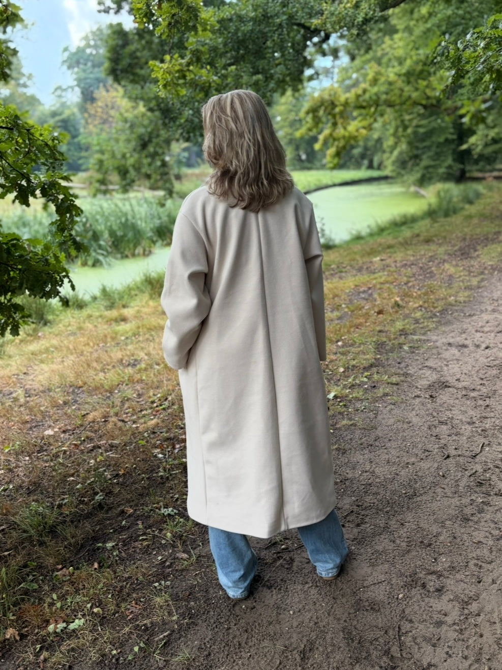 Lange mantel met knoopsluiting. De jas s gevoerd.