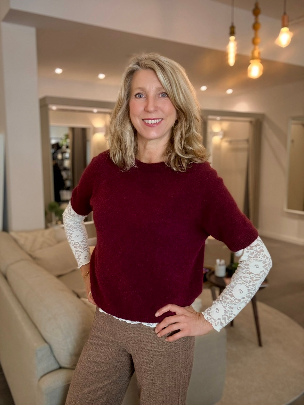 Heerlijk zachte trui met ronde hals en korte mouwen met baby alpaca wol. I
