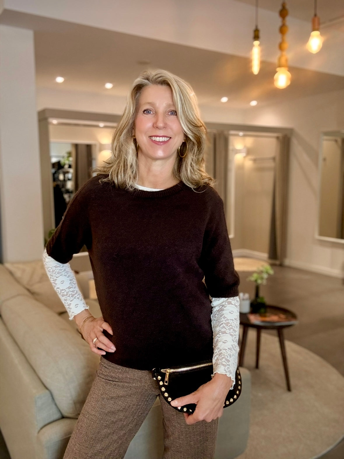 Heerlijk zachte trui met ronde hals en korte mouwen met baby alpaca wol. I