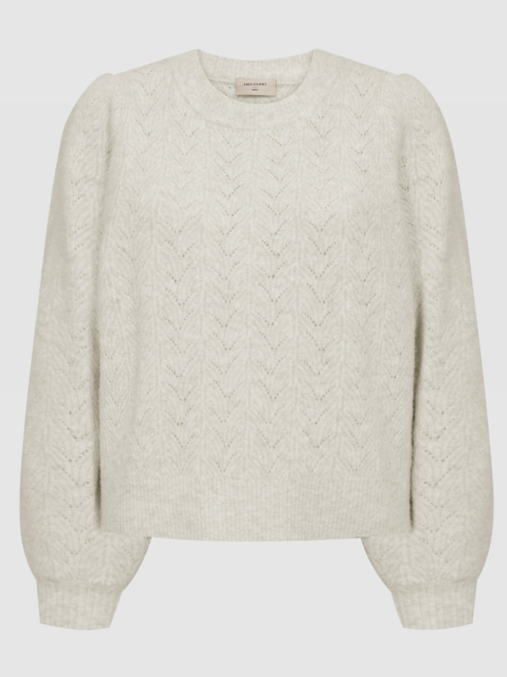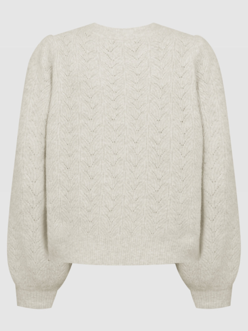 Heerlijk zachte trui met een wollige uitstraling. De trui heeft een ronde hals en pofmouwen.