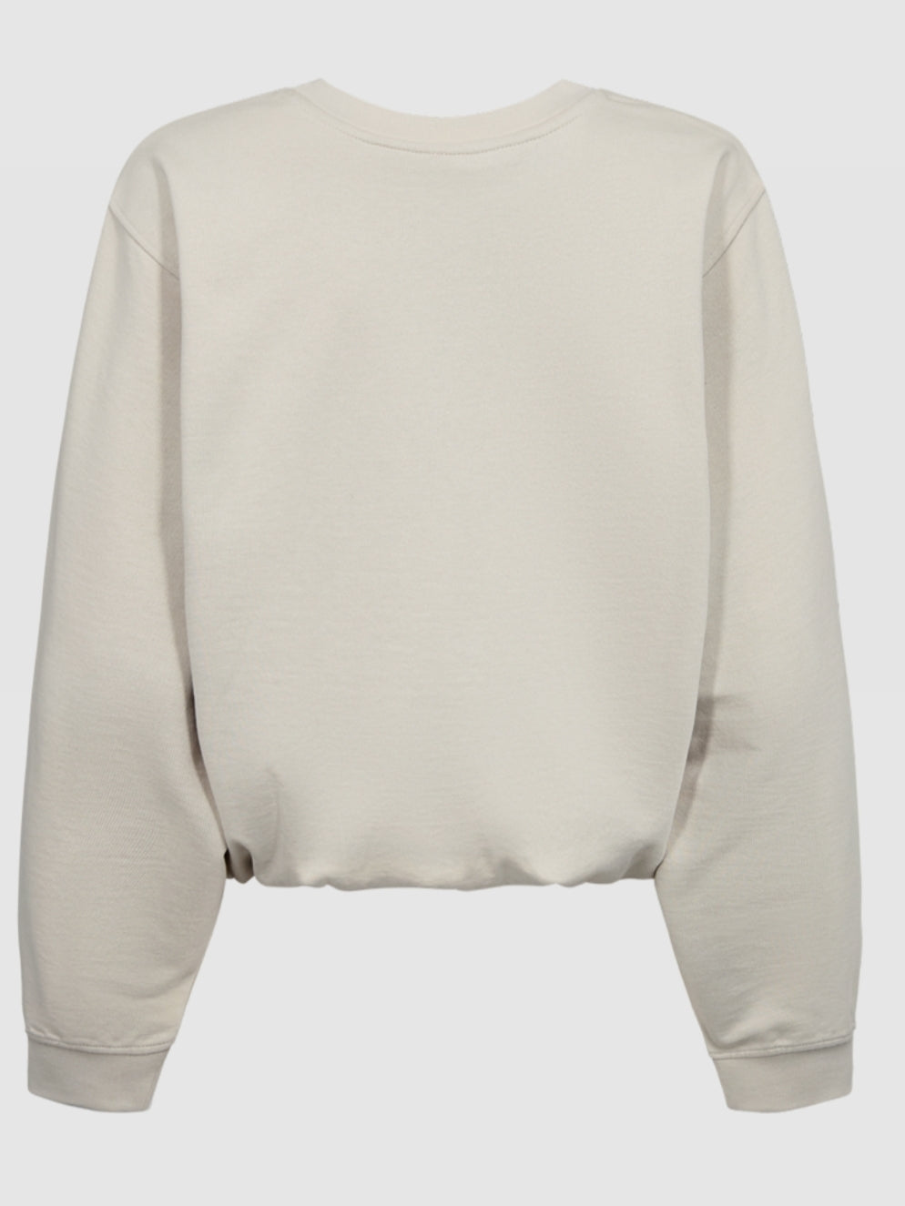 Stoere korte sweater met elastische onderboord waardoor deze extra bloezend valt. Leuk op een witte broek of jeans voor een frisse voorjaarslook. Valt oversized.