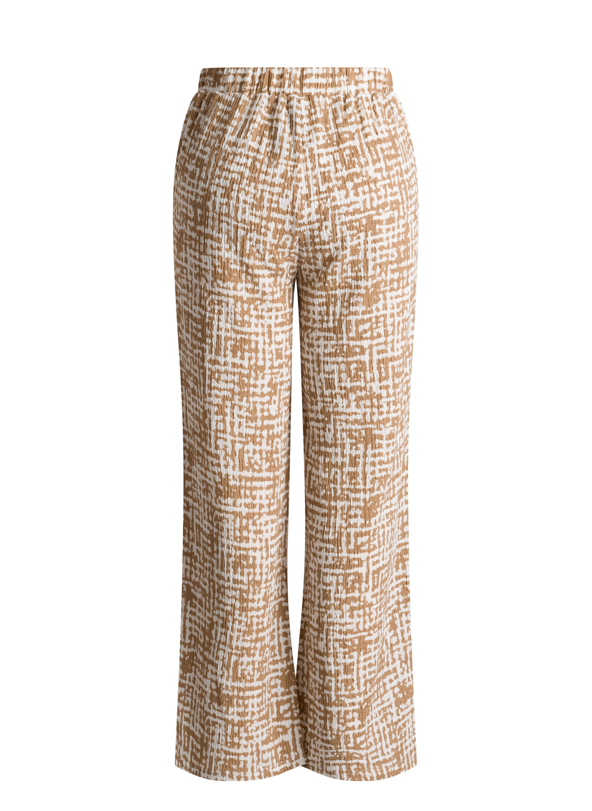 Jersey broek met wijde rechte pijpen in prettig soepel vallende stof die ook nog stretch heeft. De broek heeft een elastische boord en steekzakken en een mooie zomerse print. Bijpassende top verkrijgbaar.