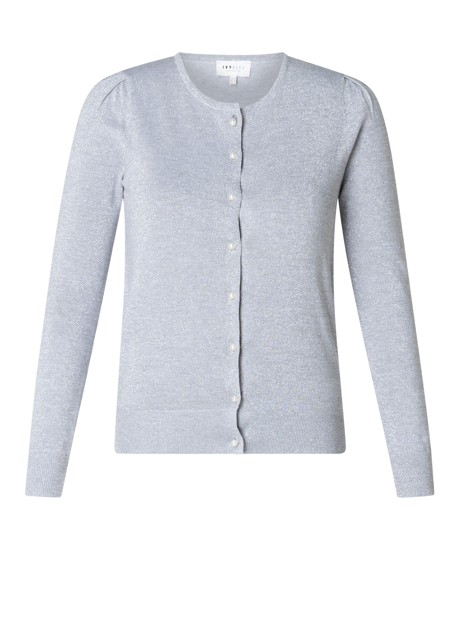 Mooi verfijnd lurex vest in zilvergrijs met een sparkle. Bij het vest is een bijpassende top verkrijgbaar. Een prachtige twinset met een feestelijke uitstraling.