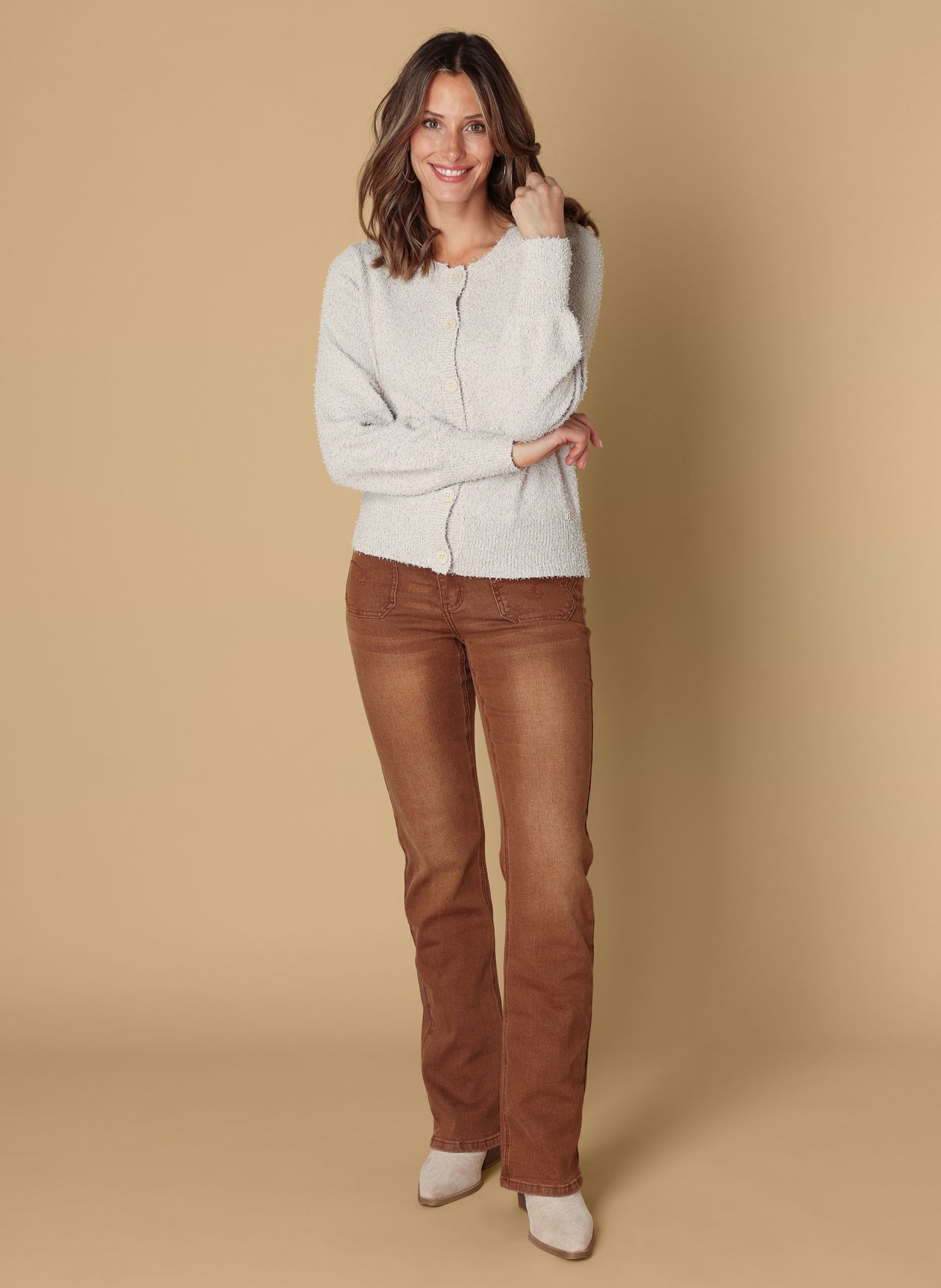 Vest gemaakt van leuke draadjesstructuur. Het vest sluit met knopen.