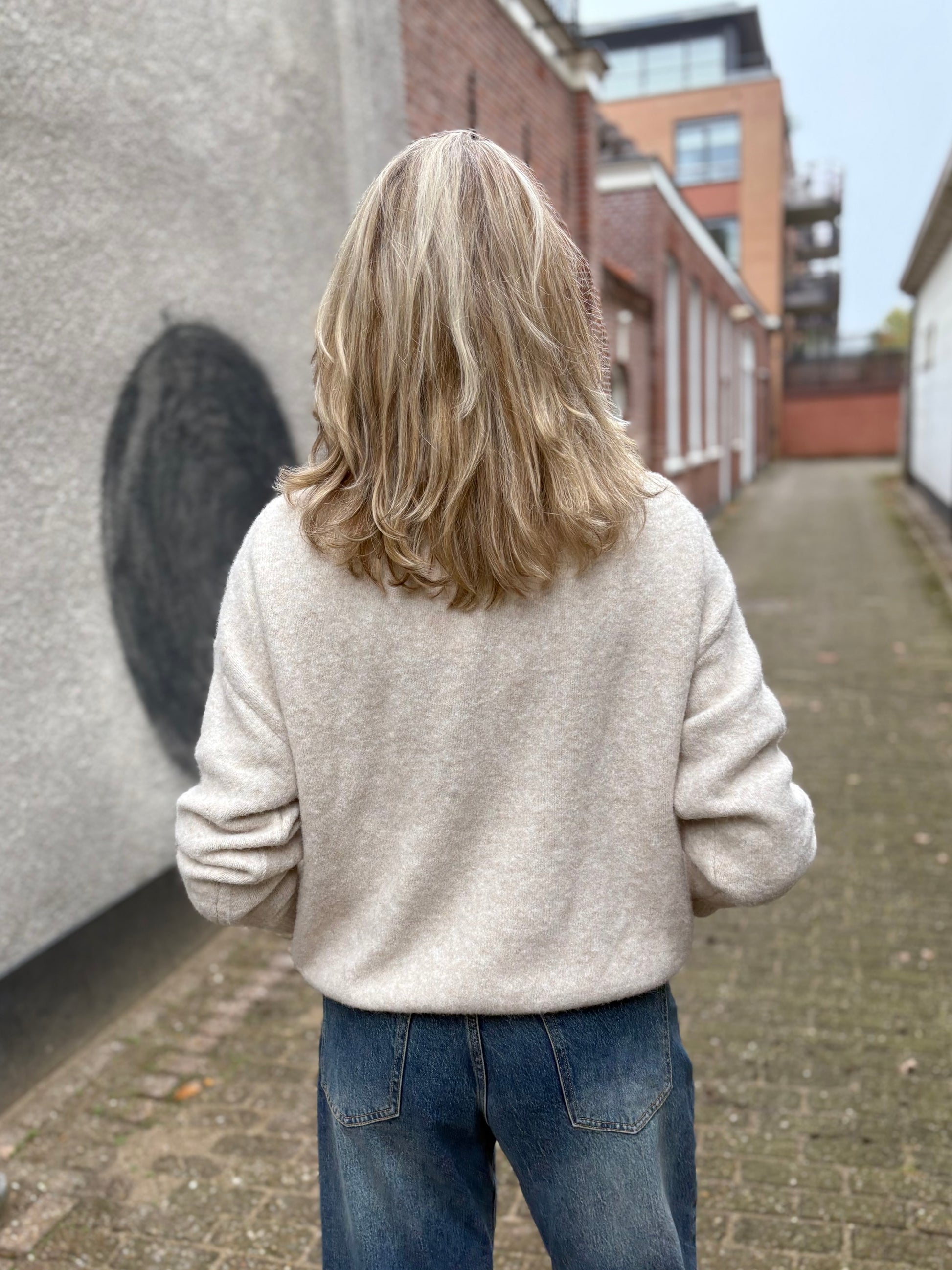 Zachte gebreide, wollige trui met L'AMOUR PARIS in suedine letters op het voorpand.