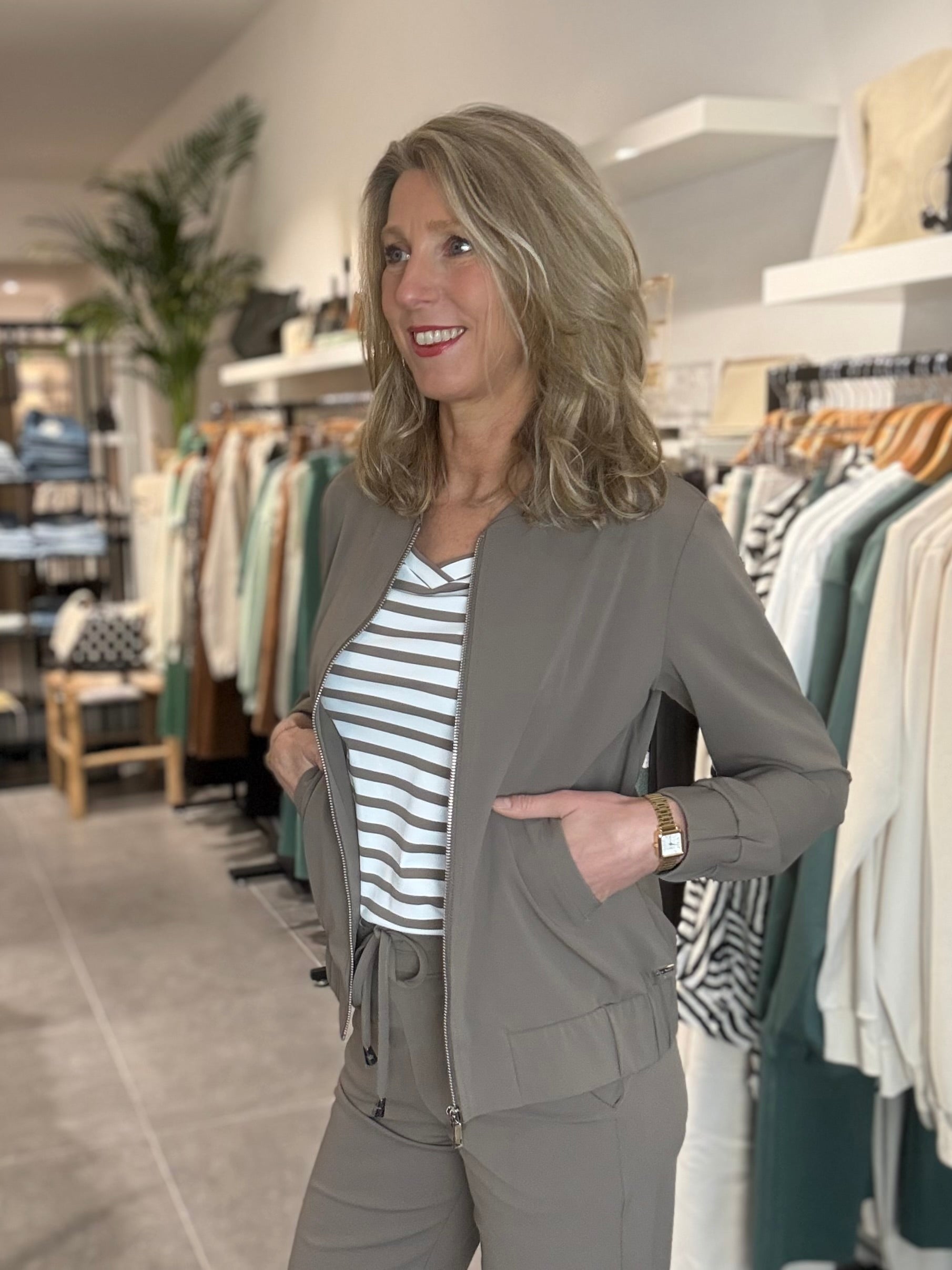 Bomberjack in hoogwaardige kwaliteit travelstofl Het jack heeft een ritssluiting en steekzakjes. De travelstof draagt comfortabel, zweet en kreukt niet en blijft ook na vaak wassen mooi. Bijpassende broek verkrijgbaar.