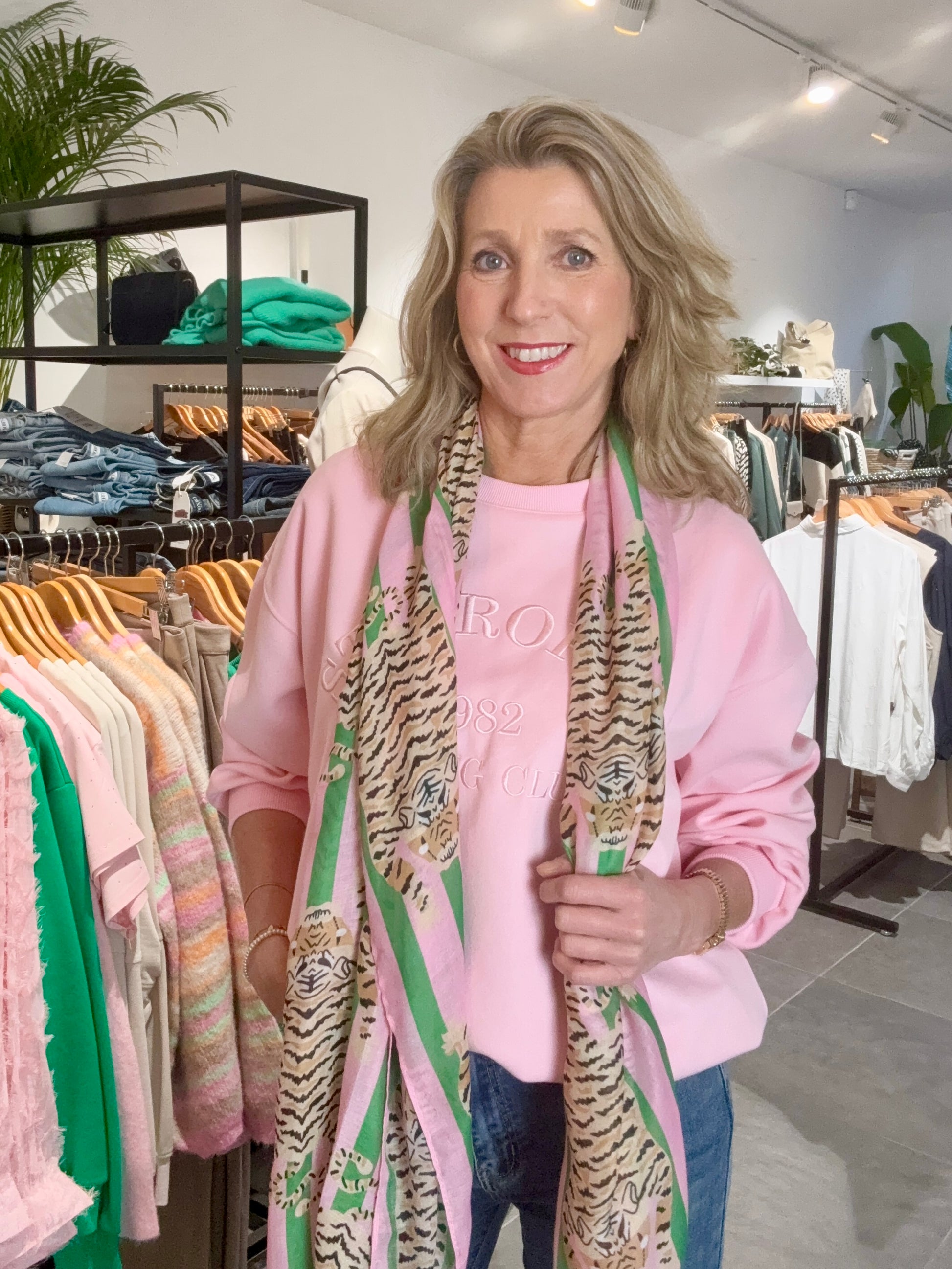 De zachte stof en comfortabele pasvorm van deze sweater maken deze trui perfect voor elke dag. De geborduurde tekst op het voorpand geeft een casual look. Ideaal voor vrouwen die houden van comfort met een stijlvolle twist.