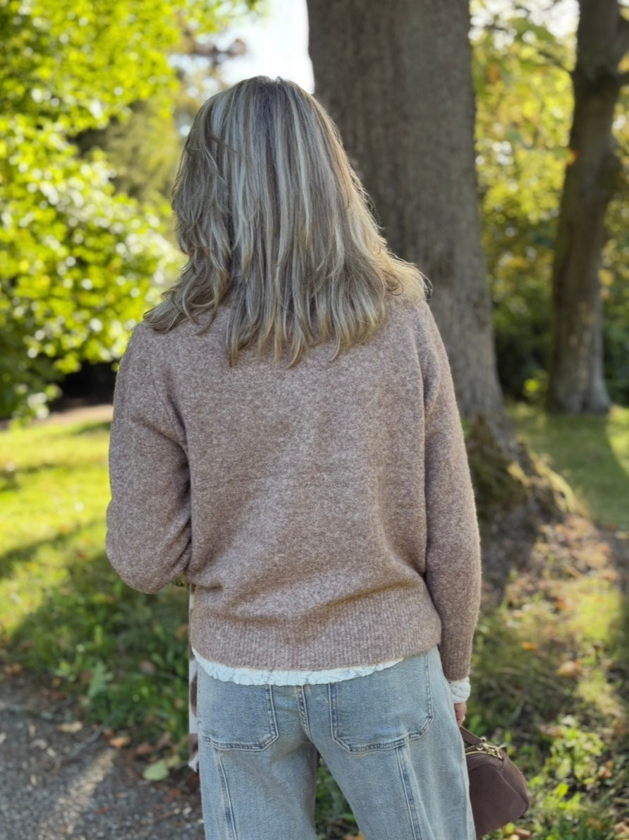 Vest met bolle parelknopen. Lekker zacht breisel.